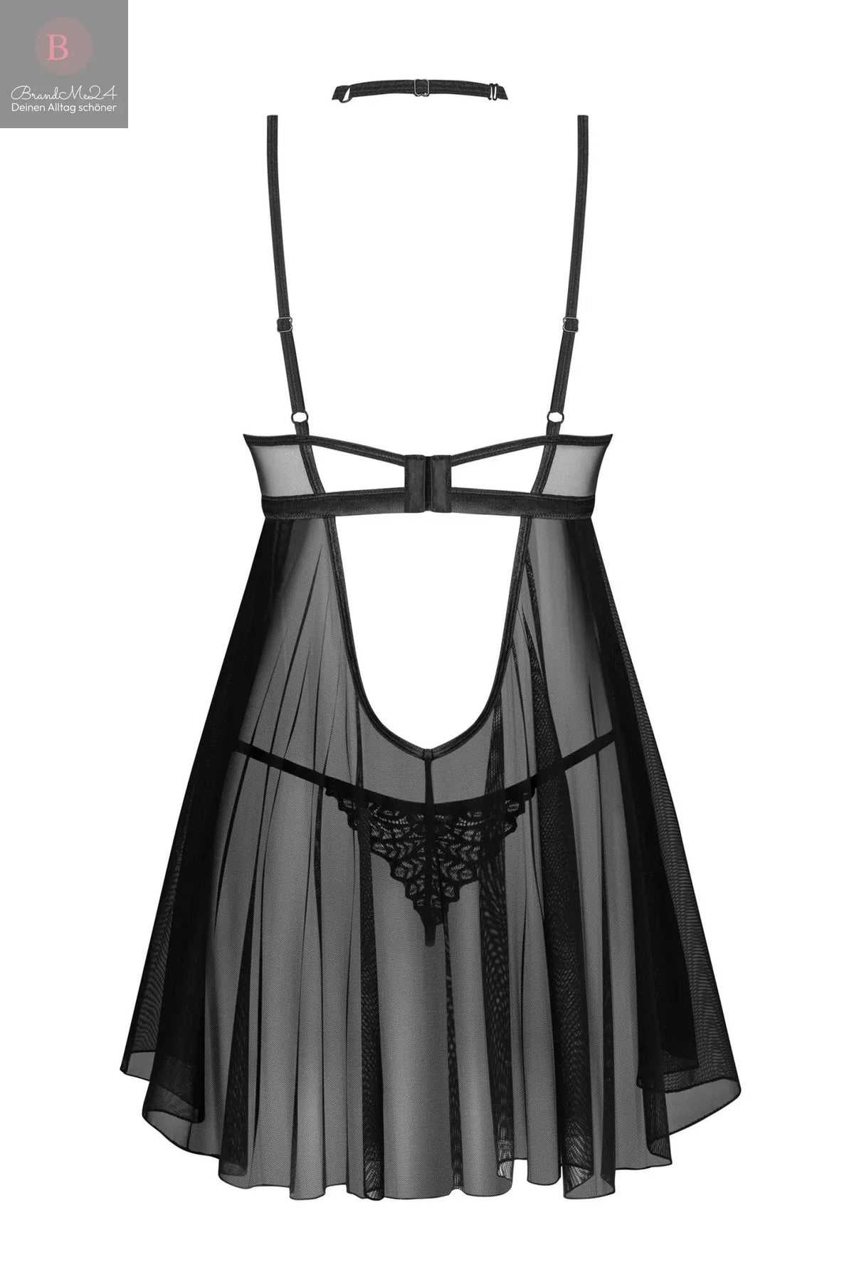The 3-piece, black set, Donarella from Obsessive, contains a babydoll, G-string and a choker. The set is made out of delicate, stretchy tulle and with elaborate embroidered inserts. It is soft and stretchy for a comfortable fit. The babydoll is low cut and has embroidery on the cups. The small decorative element between the cups is a real eye-catcher. The hook faster at the back and the straps can be adjusted to fit. The G-string looks extremely seductive because of its delicate embroidered inserts at the front and the back. The tight-fitting but adjustable choker completes the erotic and elegant look! The product is packaged in a box. Care instructions: 30 degree hand wash Color : black Material : 94% polyamide / 6% elastane, String &, collar 90% polyamide / 10% elastane Available Size : XS/S, M/L, XL/2XL