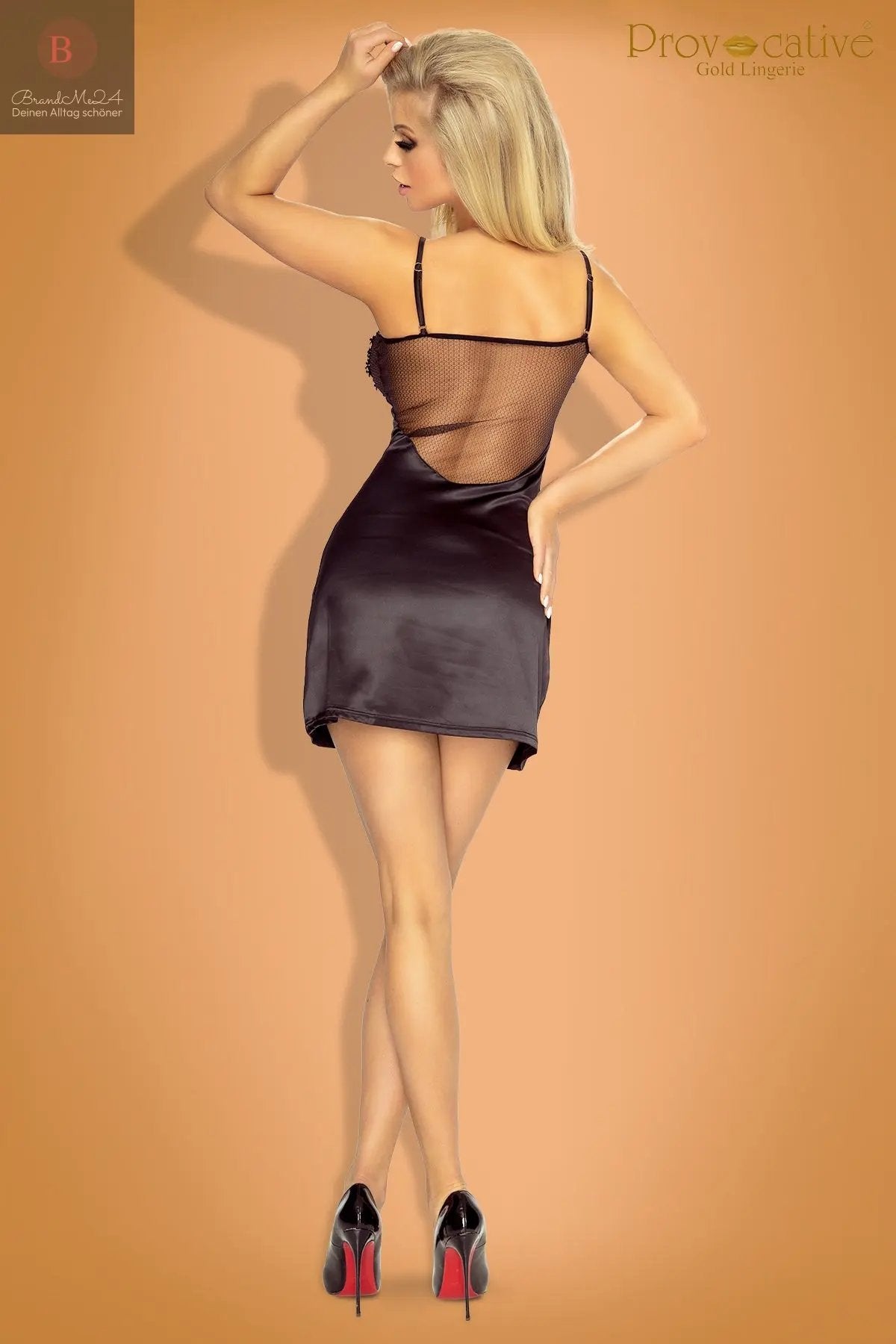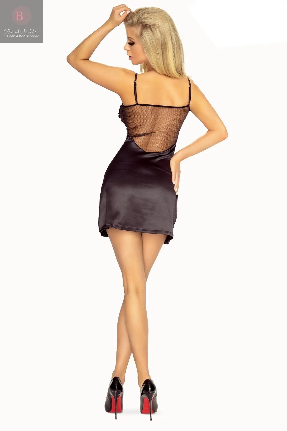 Hochwertiges Chemise, gefertigt aus weichen Satin-Material, feinem Netz-Stoff und  elastischer Spitze. Die Träger sind verstellbar. Der Artikel ist in einer Hochglanzbox verpackt. Pflegehinweis : 30Grad Handwäsche Farbe : schwarz Material : 90% Polyamid / 10% Elasthan erhältliche Größen : S/M, L/XL | Größentabelle