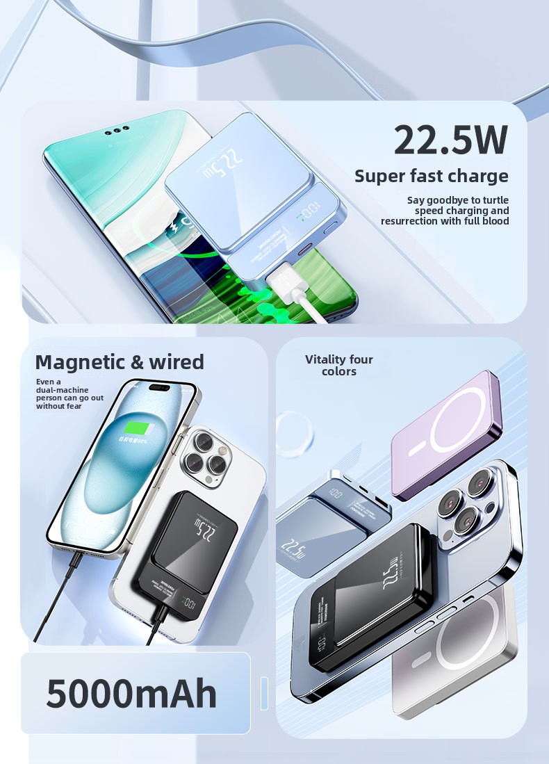 Fast Charging: Supports PD22.5W and PE2.0 protocols for rapid power delivery.
