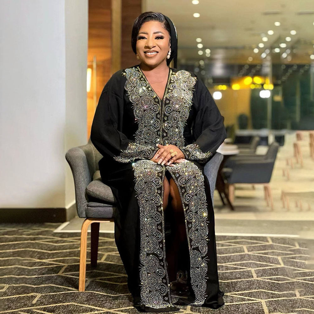 Dress Middle East Muslim Style Robe Fashion V-neck Hot Drilling