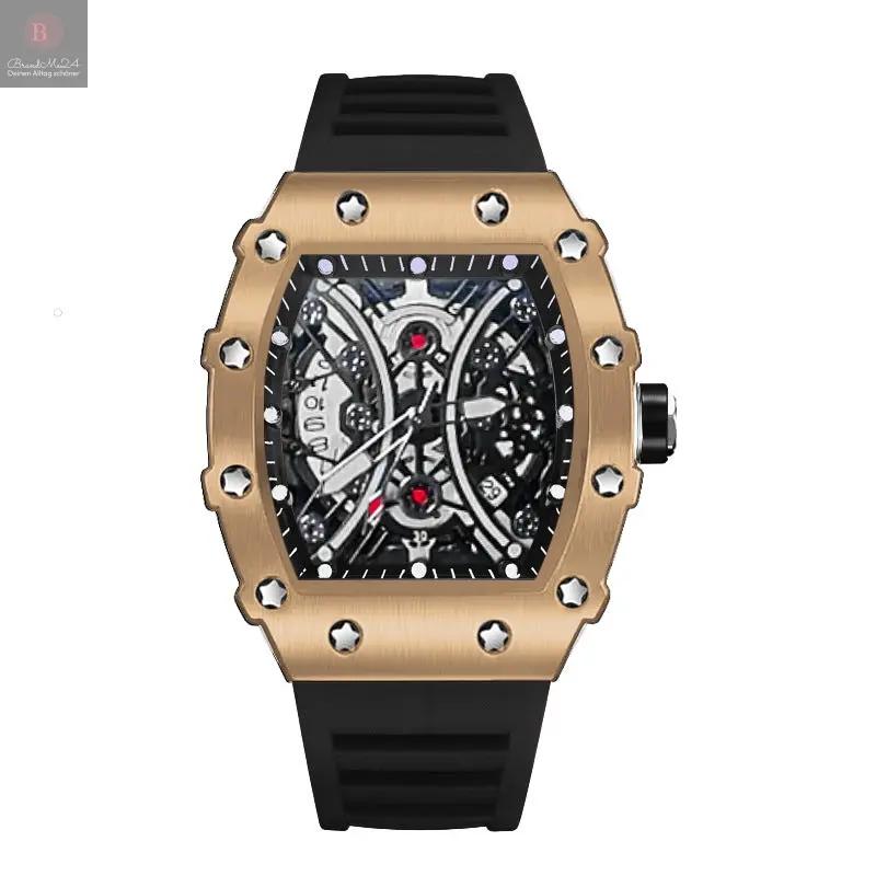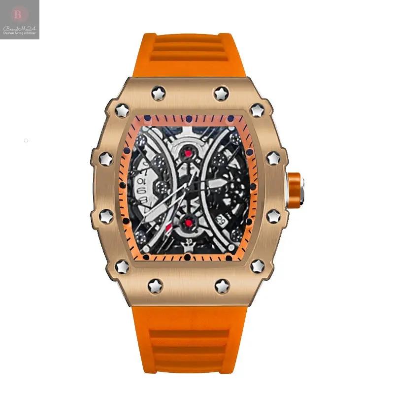 Hollow Dial Design: Stylish see-through dial showcasing inner mechanisms.