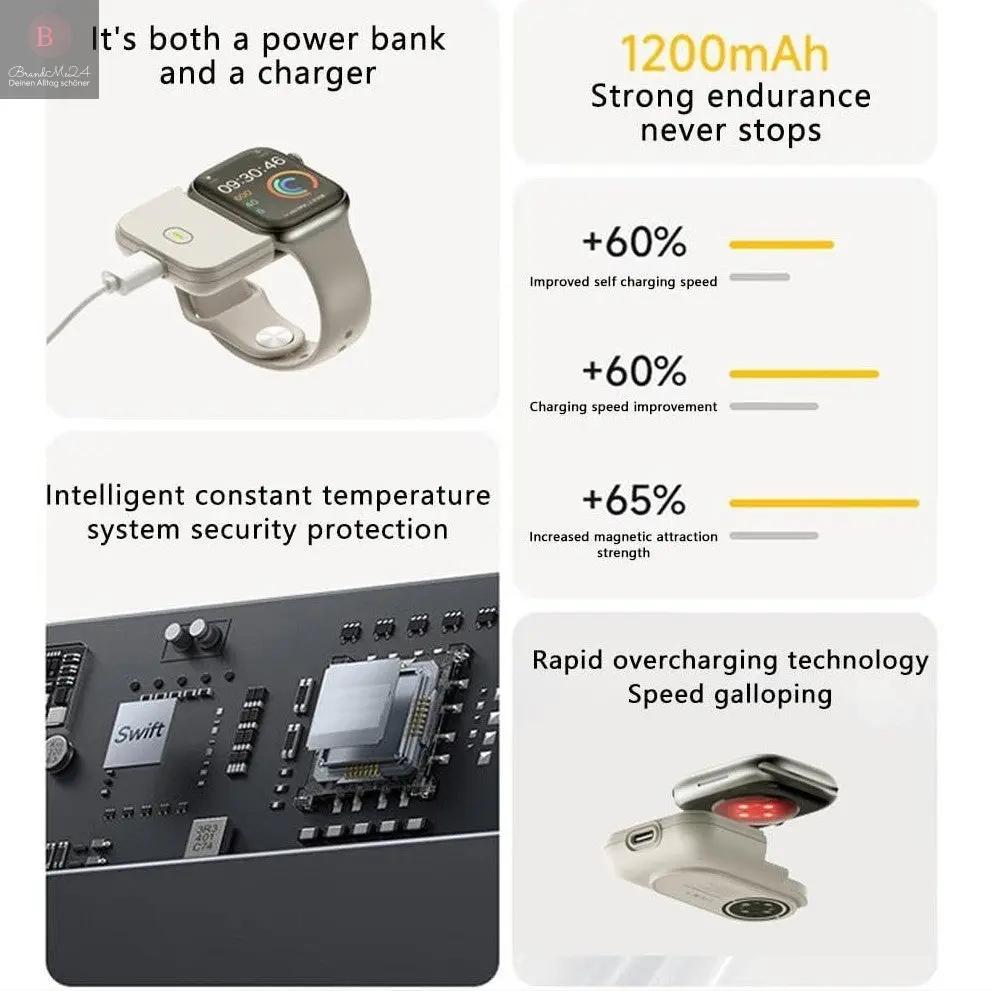 Smart Watch Power Bank – A stylish wireless charging case designed to keep your Apple Watch powered on the go with up to 15 hours of extended battery life.