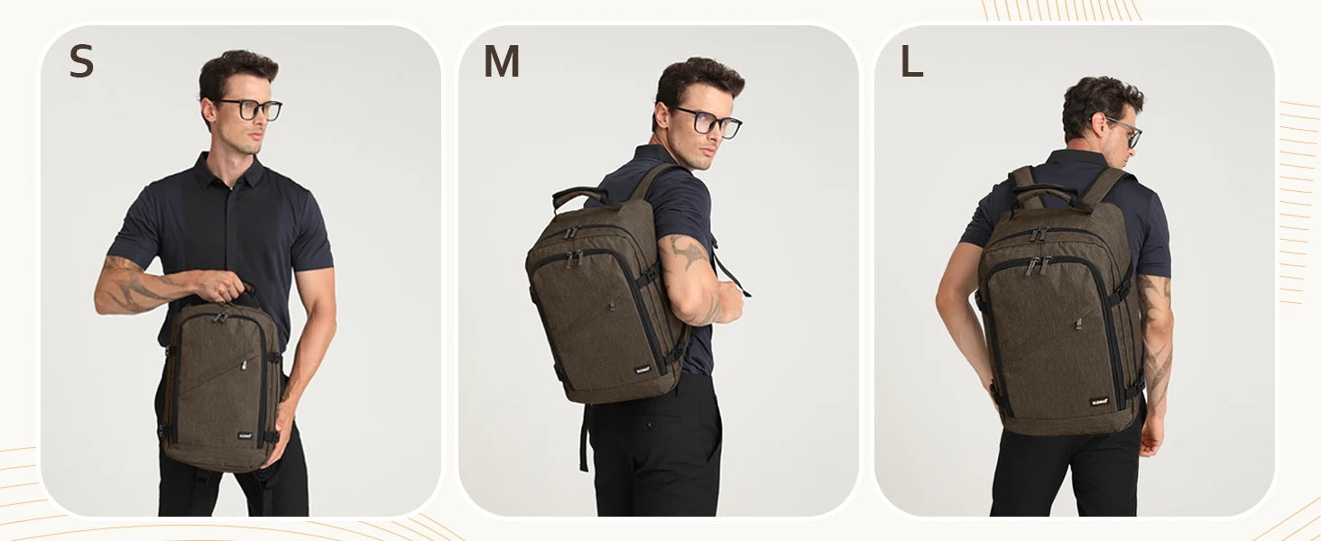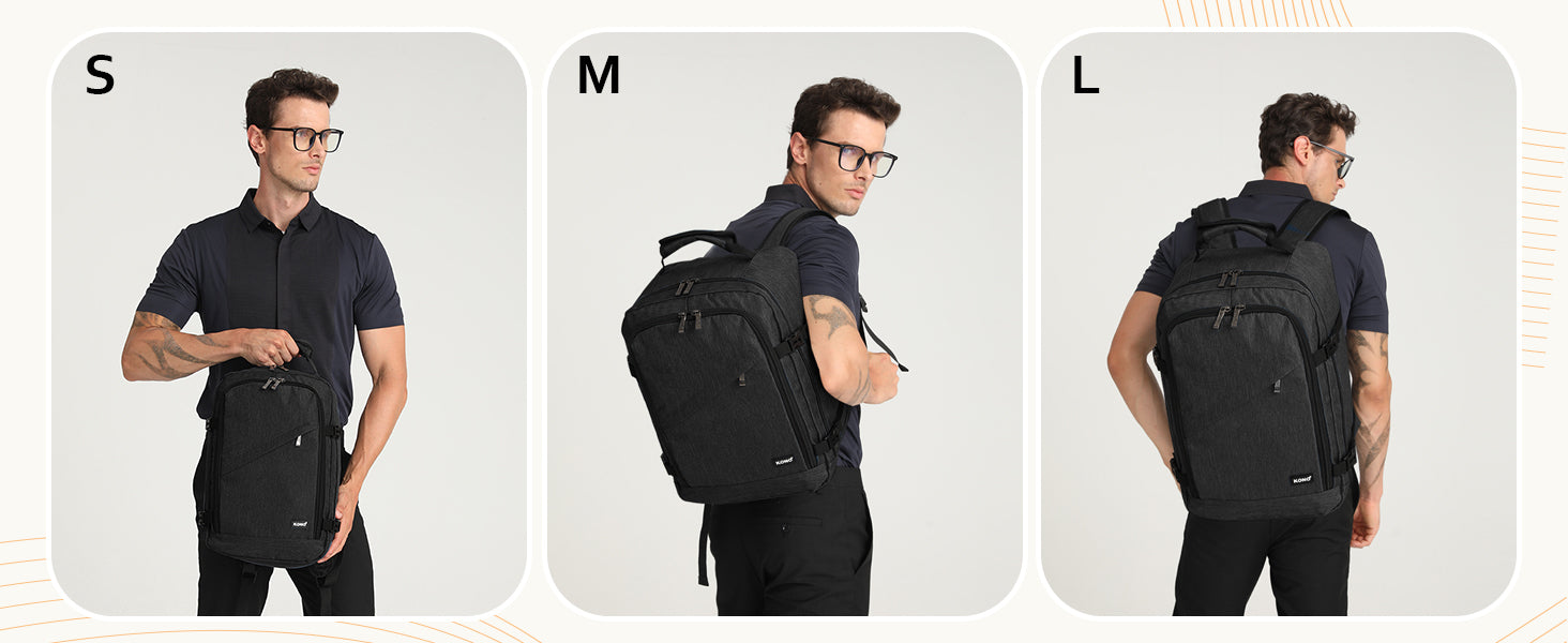 • Medium (45 × 33 × 20 cm, 30L):Optimal companion for short trips