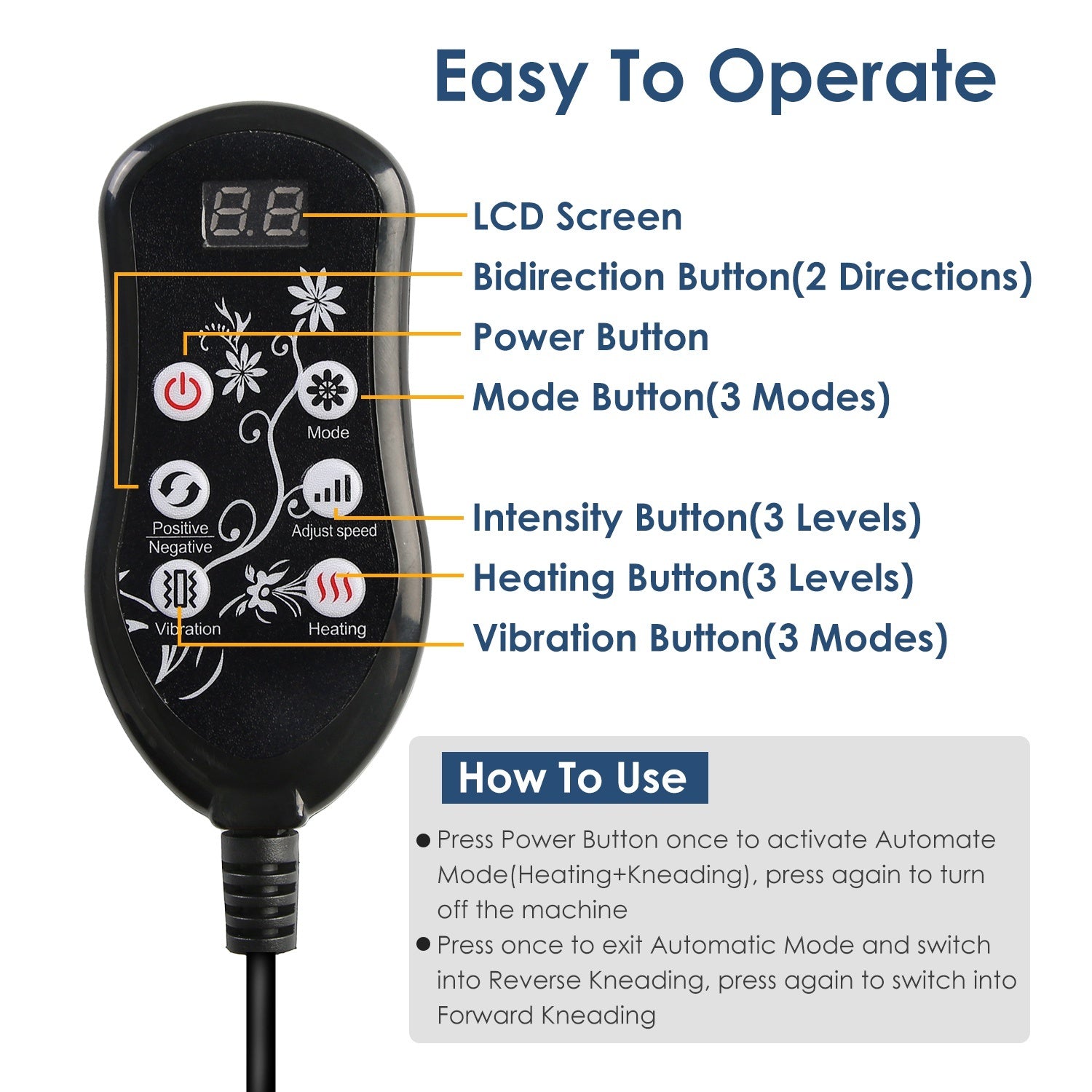 *:Massage for 15 minutes,enjoy comfort all day long. Our electric back massager will automatically shut off for safety after 15 minutes’ massage. The remaining massage time is clearly displayed on the LCD screen. It also features over-current protection to safeguard against potential fire risks.