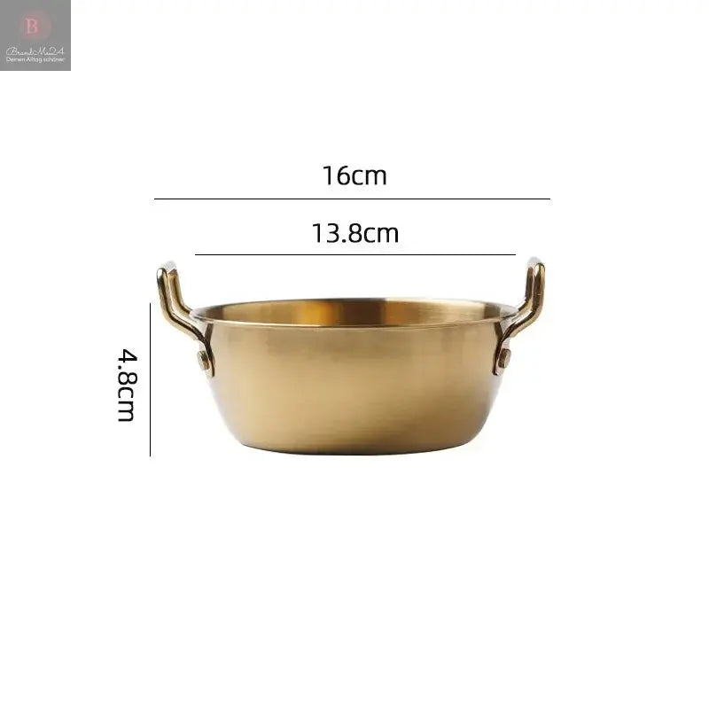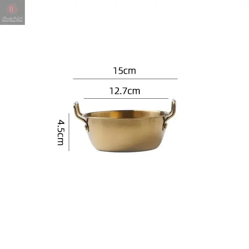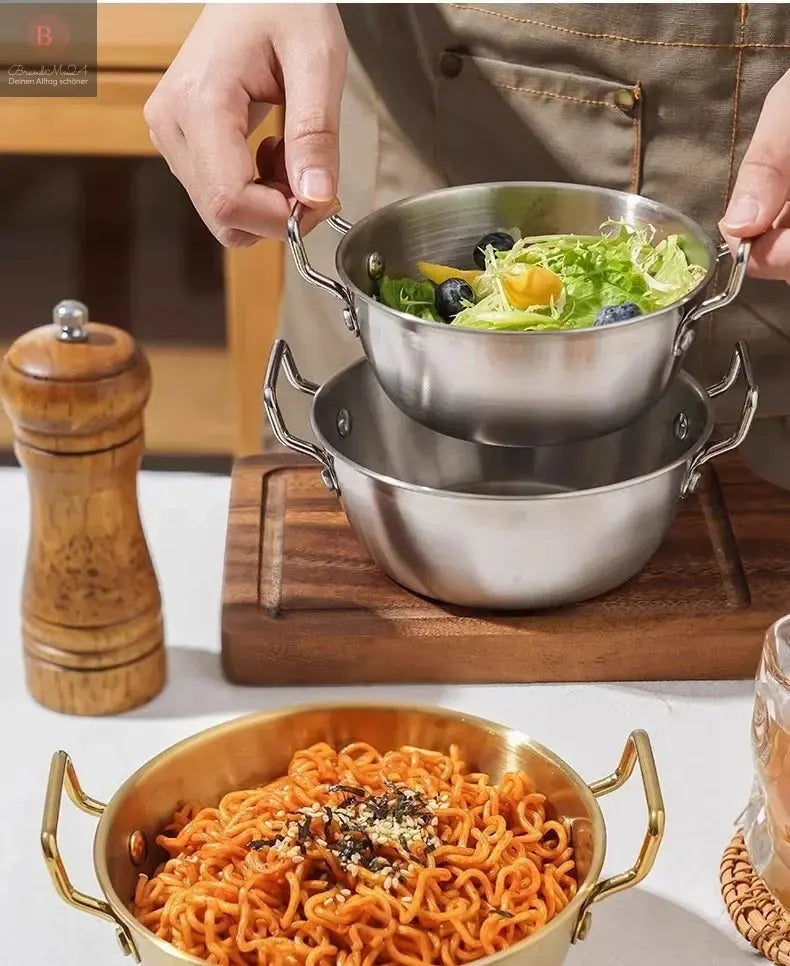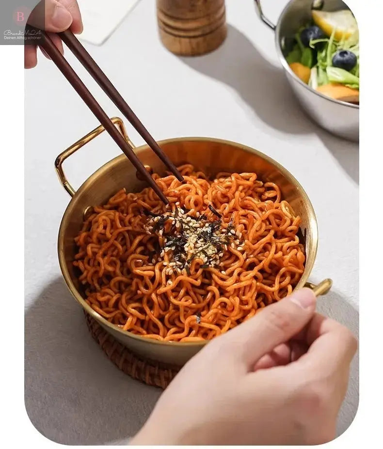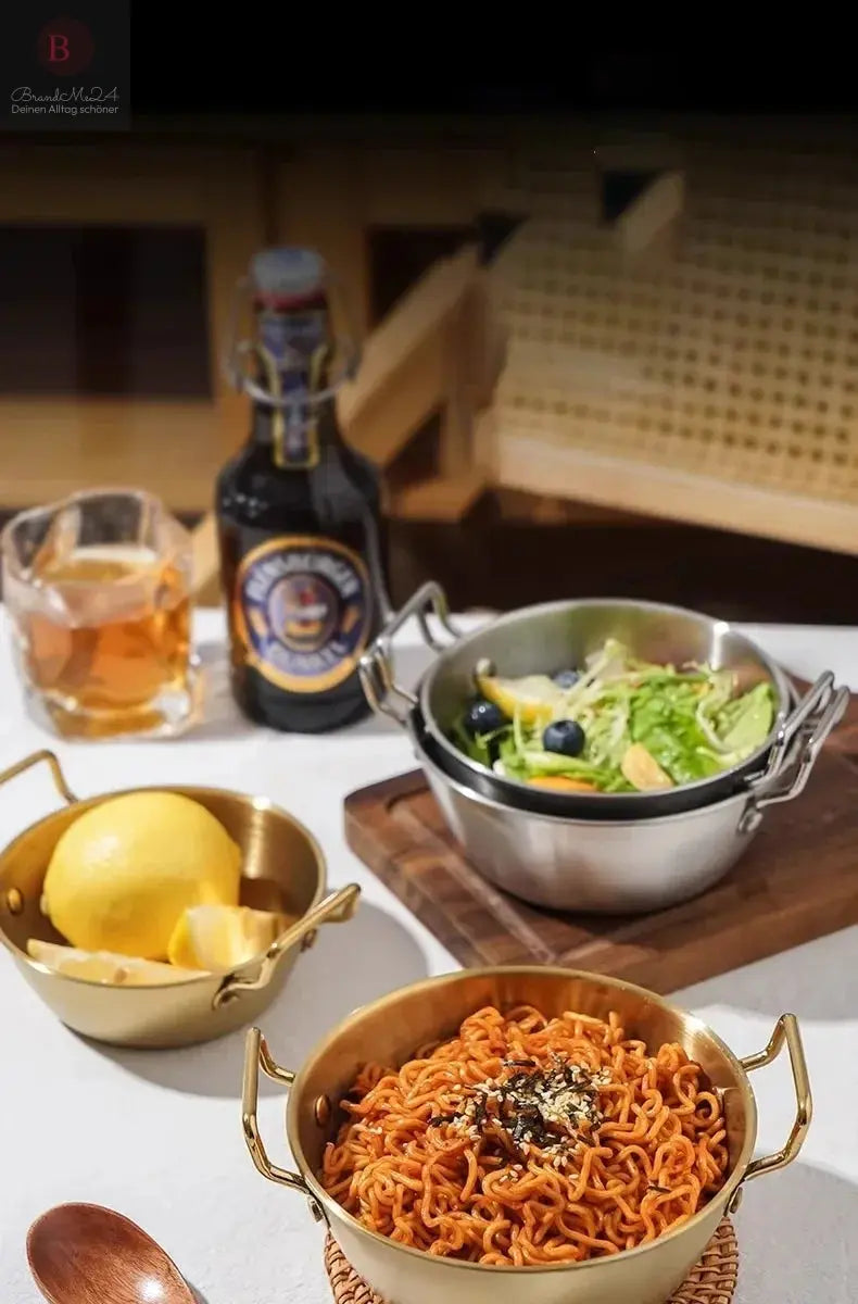 Beschreibung: • Edelstahl 304: Diese aus hochwertigem Edelstahl 304 gefertigte Schüssel bietet überragende Haltbarkeit und Langlebigkeit und stellt sicher, dass sie zu einem zuverlässigen Küchenutensilien wird. • Vielseitig einsetzbar: Diese Schüssel eignet sich perfekt für die Servierung einer Vielzahl von Gerichten, von Instantnudeln bis hin zu Salaten und Pommes Frites, was sie zu einer vielseitigen Ergänzung Ihrer Geschirrsammlung macht. • Goldenes Design: Der goldene Farbton der Schüssel verleiht jeder Essumgebung einen Hauch von Eleganz und Raffinesse und verbessert das gesamte Speiseerlebnis. • Griff für einfaches Tragen: Ausgestattet mit einem Griff erleichtert diese Schüssel das Tragen und eignet sich perfekt zum Servieren von Gerichten auf Potlucks oder auf Partys. • Menge: Dieses Produkt wird einzeln geliefert und bietet Ihnen eine perfekte Lösung, um eine Person gleichzeitig zu bedienen.