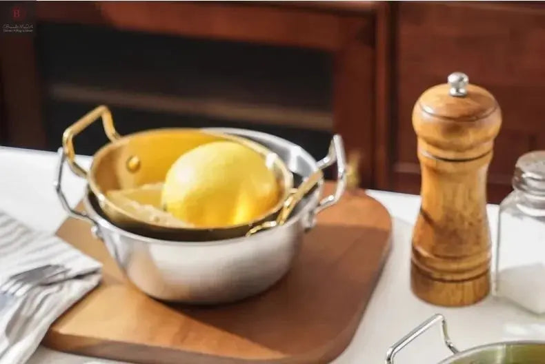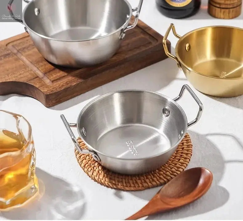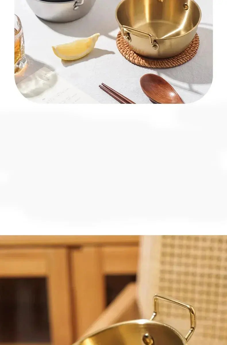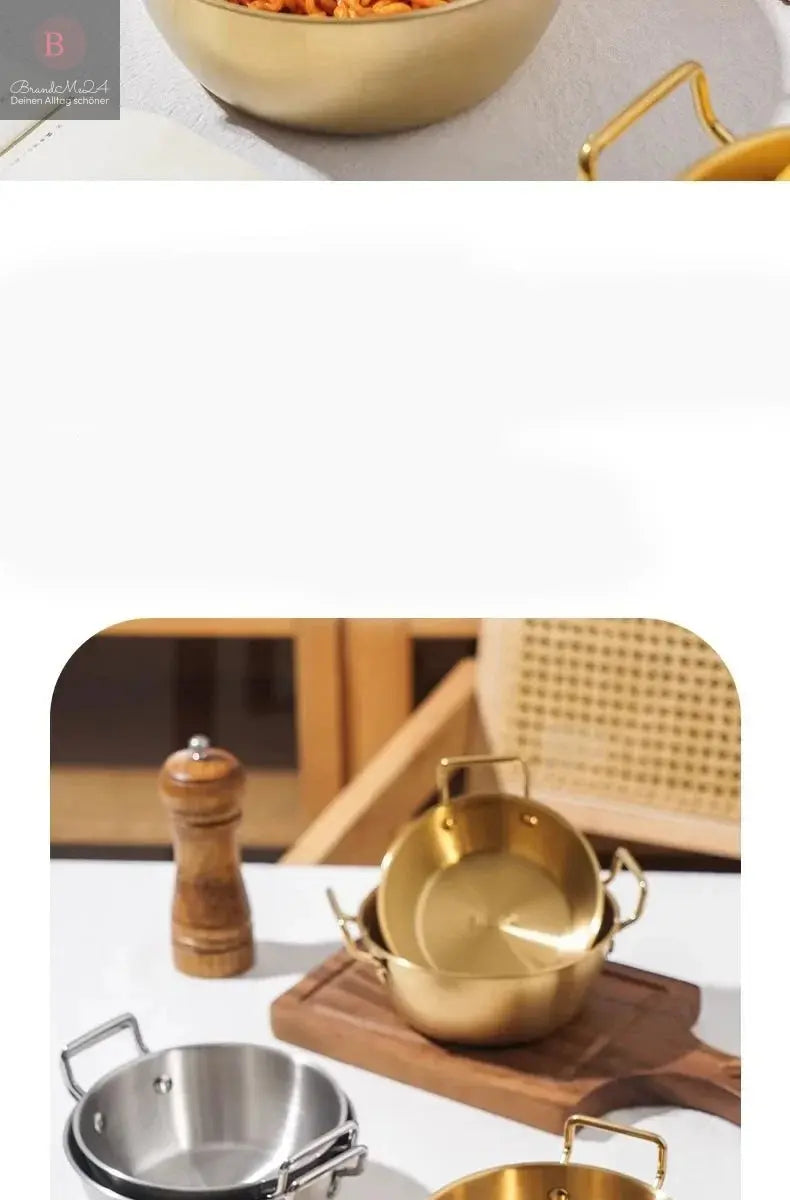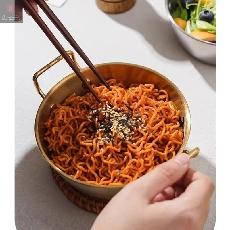 Beschreibung: • Edelstahl 304: Diese aus hochwertigem Edelstahl 304 gefertigte Schüssel bietet überragende Haltbarkeit und Langlebigkeit und stellt sicher, dass sie zu einem zuverlässigen Küchenutensilien wird. • Vielseitig einsetzbar: Diese Schüssel eignet sich perfekt für die Servierung einer Vielzahl von Gerichten, von Instantnudeln bis hin zu Salaten und Pommes Frites, was sie zu einer vielseitigen Ergänzung Ihrer Geschirrsammlung macht. • Goldenes Design: Der goldene Farbton der Schüssel verleiht jeder Essumgebung einen Hauch von Eleganz und Raffinesse und verbessert das gesamte Speiseerlebnis. • Griff für einfaches Tragen: Ausgestattet mit einem Griff erleichtert diese Schüssel das Tragen und eignet sich perfekt zum Servieren von Gerichten auf Potlucks oder auf Partys. • Menge: Dieses Produkt wird einzeln geliefert und bietet Ihnen eine perfekte Lösung, um eine Person gleichzeitig zu bedienen.