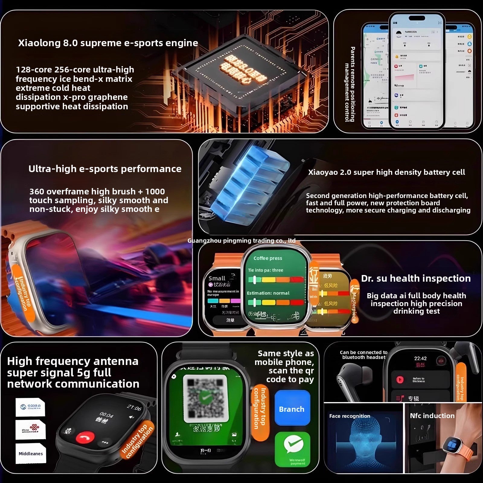 Smart Features: High-performance smart watch with 190° rotating camera, video call capability, and cellular speaker.