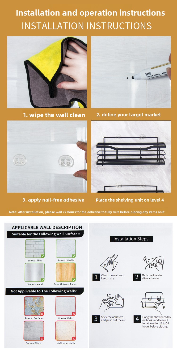 Punch-free Installation: No drilling required, easy to mount on walls.